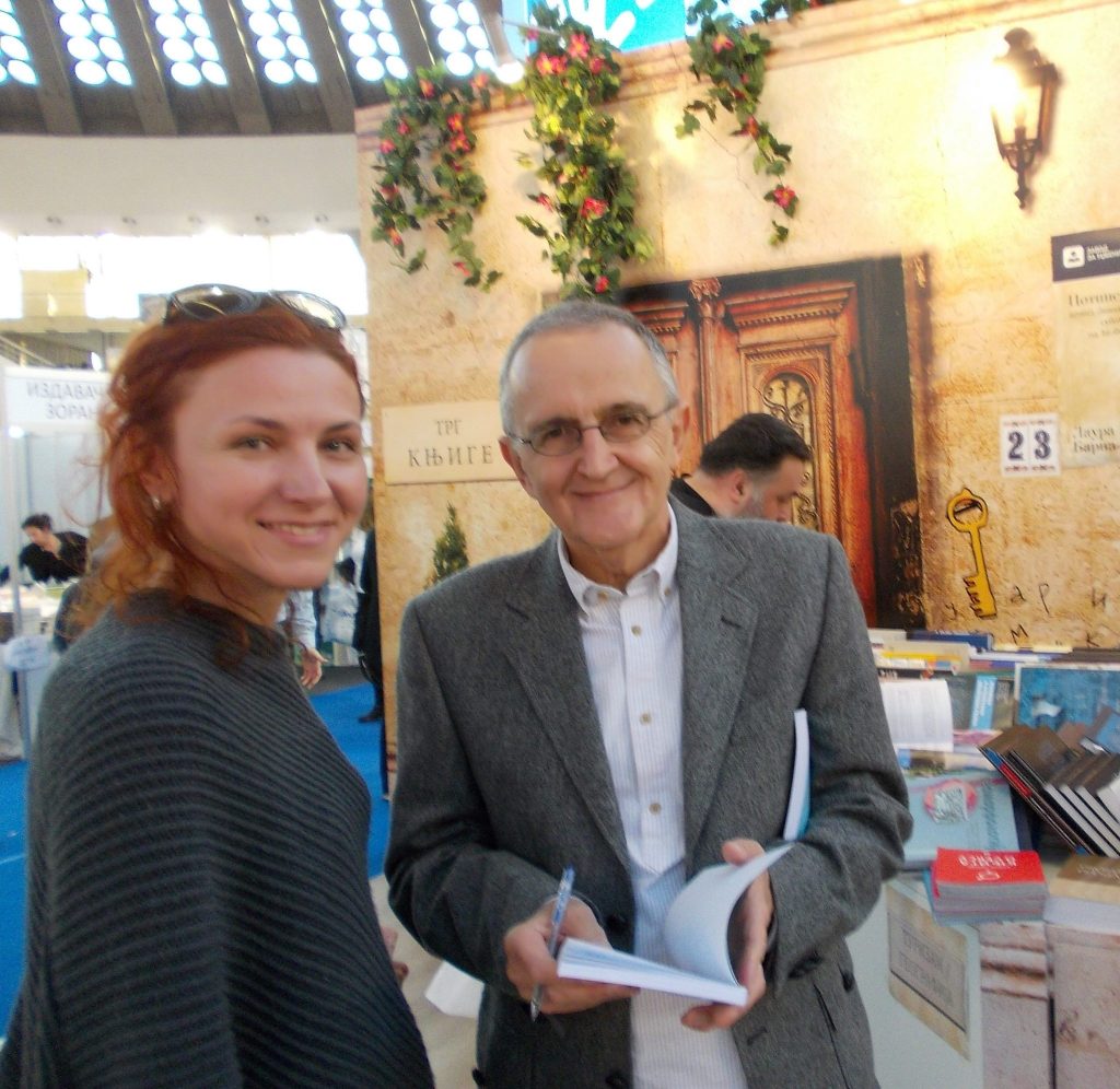 Иако нисам тумач фотографија, једна слика са београдског Сајма књига 2016. године је остала у мом сјећању. Она на којој разговарам са сасвим обичним и једноставним човјеком, творцем многих чудесних и необичних књига.