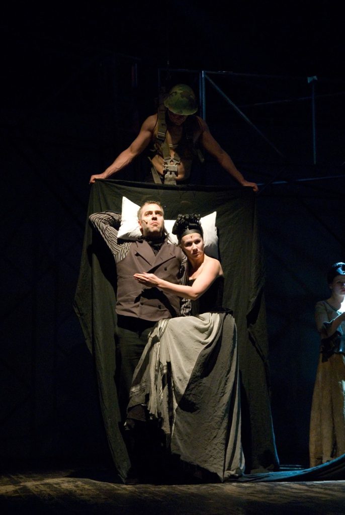 На сцени је све сјајно! Сви су обучени у бело, весели, разиграни, покушавају да талентом надоместе сценографске и костимографске недостатке. Али мучени егзистенцијалним бригама, понекад изгубе концентрацију и вољу на позорници. Приватни живот их омета у глуми: улази на сцену, меша се у представу, развлачи их по сцени и одвлачи их са сцене на којој ноктима и зубима покушавају да се задрже. – „Ако волиш позориште мораш да одеш из њега, да га не би замрзео.“